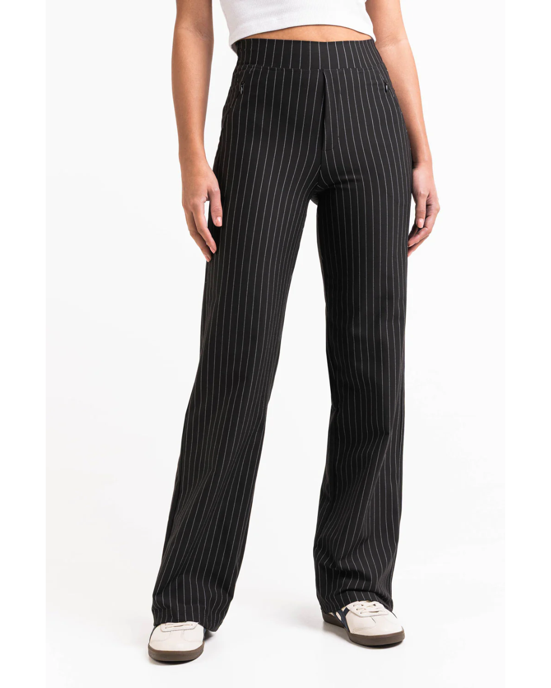 Gândiți pentru practicitatea zilnică, acești pantaloni încorporează buzunare laterale discrete și funcționale. Aceste compartimente permit transportul obiectelor personale esențiale în siguranță, fără a compromite linia fluidă și minimalistă a designului.
